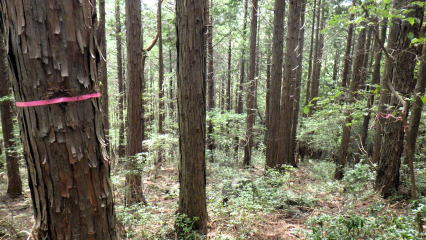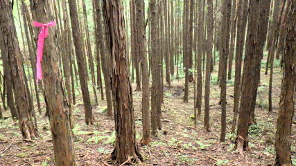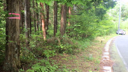 ![]() 左端のピンテが、大根山登山口です。入山すると道を覆う藪…整えます。 (12:00) |