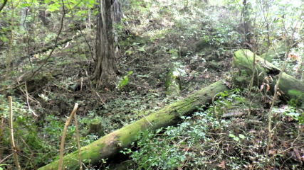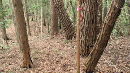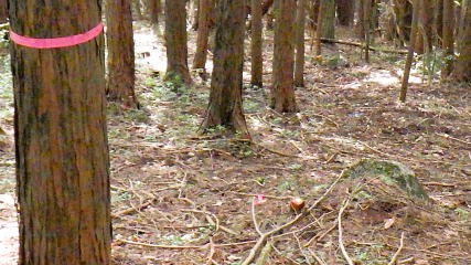 ![]() 尾根にテープが続きます。ちょっとの藪がありますが、この程度でここだけです。 |