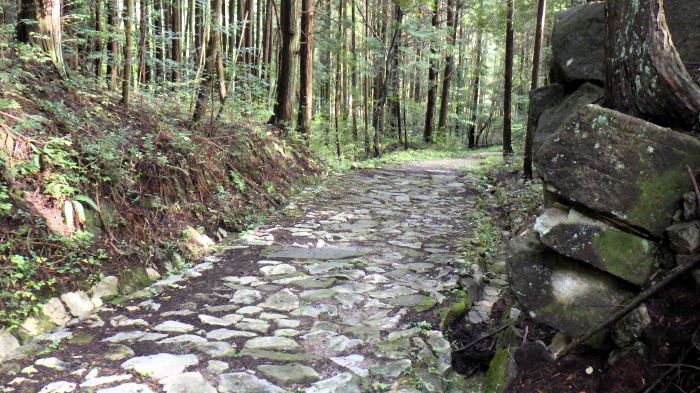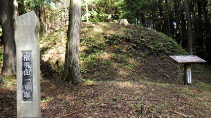 ![]() <東海自然歩道見所> 手前の駐車場から歩き、石畳のある権現山一里塚を訪問しました。1604年中山道に築かれたものです。 (往復15分) |