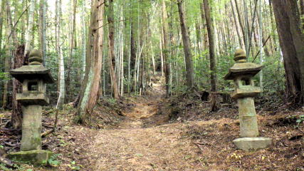 ![]() 一里塚から500m東に走り、刈安神社入口の路肩に駐車。石段は立入禁止で左の迂回路を登ります。 (10:10) |