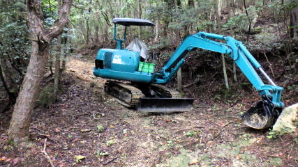 ![]() 道を整備するコンボが置かれていました。今日は祝日なので重機もお休みです。 |