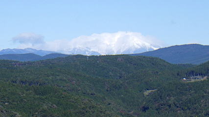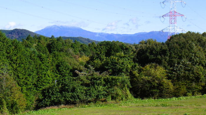 ![]() 牧草地越し、東に恵那山2191m。冠雪は確認できますが、薄い雲がかかっています。 すぐY字分岐があり、右の牛舎方面は進入禁止です。左の草道に入ると… |
