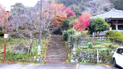 ![]() 登りきると観音堂の円通閣。右の石段が登山口で、愛宕山西国三十三霊場を巡ります。 |