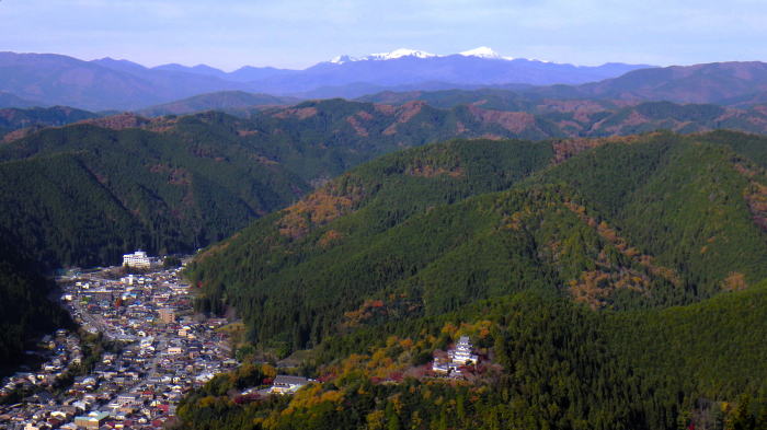 2025年11月23日(日) ![]() 展望岩より (下左:八幡町、下中央:郡上八幡城、上奥:左から三の峰、別山、白山2702m) |
