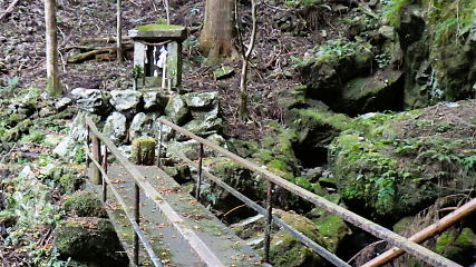 ![]() 折り返し6ヶ所目で沢道出合。外国人の男子ソロとすれ違う。乙姫滝滝口の乙姫水神の祠(明治28)に寄り… (13:35) |