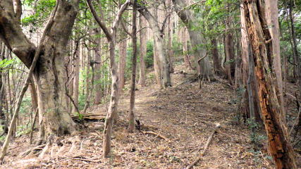 ![]() しばらくは尾根道です。頂上近くで右の山腹道に折れますが、根性を入れ尾根を急登。やがてコンクリ基礎の上に… |