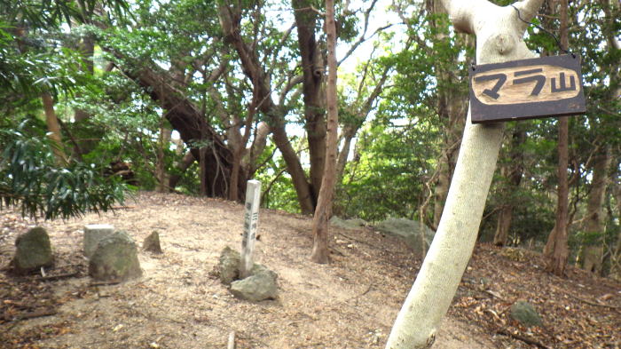 ![]() マラ山山頂166m三等三角点、展望なし。 下ネタ?かと思う山名ですが、丸山が転じた説があります。北尾根を降ります。 (10:20) |