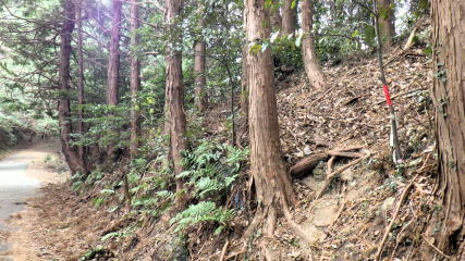 ![]() 再び林道に降り、左へ10分歩けば、この砥神山登山口。登山道を登ると… (11:00) |