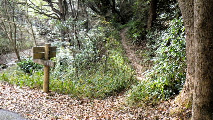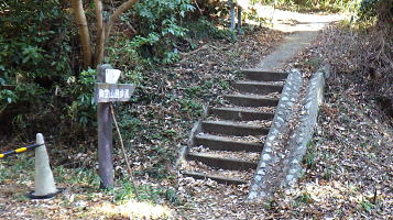 ![]() 正面に道標「御堂山遊歩道/御堂山」が立ち、階段を登ります。 |