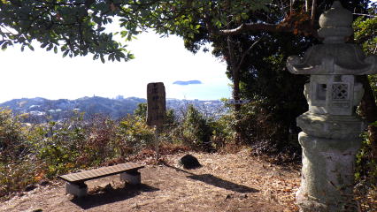 ![]() 砥神山252m西山。三河富士と呼ばれ、磐座・石灯籠が立ちます。好展望で中央に浮かぶのは、三河大島です。 (11:40) |