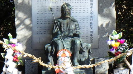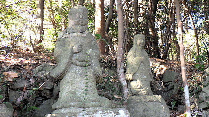 ![]() 山頂南直下に3体の石像が祀られています。前の階段から下山すると… |