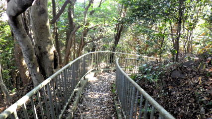 ![]() 急斜面には、頑丈な階段。途中、各所に石像が祀られています。 |