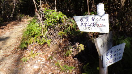 ![]() 大縣神社(電波塔)分岐。右折して展望台・本宮山頂へ。展望台は、還りに行きましょう。ここから… |