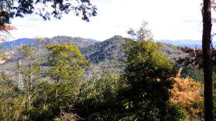 ![]() 還りに展望台(進入禁止)。中央右:尾張白山250m、中央左:本堂ヶ峰276m。洞穴から45分で駐車地着。 TOP地図のように∞周回をしようかと思いましたが、前夜の雪でビビッて山姥洞穴ピストンにしました。 |