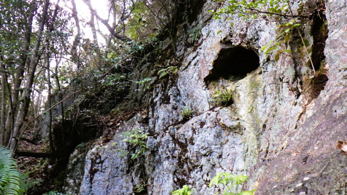 ![]() 左右の足場に乗ると、手が洞穴入口に届きます。奥行は2m、奥の幅は60cm程度で、自然のカプセルホテル。 |