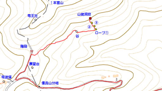 2012年、野良人さんの案内で左図竜王神洞穴・山姥の洞穴を訪れました。 レポを参考に後者を探索され方が、行き着けなかったと書込みを頂きました。 14年前のことですから状況が変わったかも。再確認してみます。 |