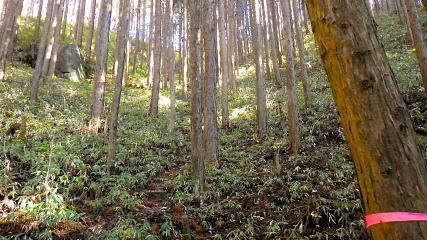 ![]() 登山口から30分、林道から斜面へ取付きます。 (10:15) |