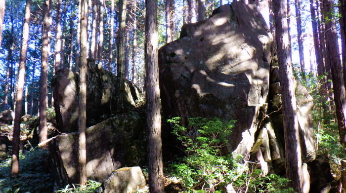 ![]() 林道斜面に大岩の大河。この山の基本は、岩山だということを認識します。 |