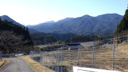![]() 駐車地着。第2座に向かう前、車中ランチしました。 (12:00) 上親田集落を抜け、新巣山へ走ります。奥は東白川村と白川町の境界尾根です。天気がいい風もない。 |