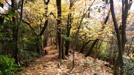 最初は急降下。古墳跡の金毘羅神社に出ると南側に… |