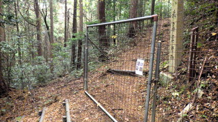 清滝集落を東へ進み、霊泉寺前の道から北進。防獣網扉が登山口です。