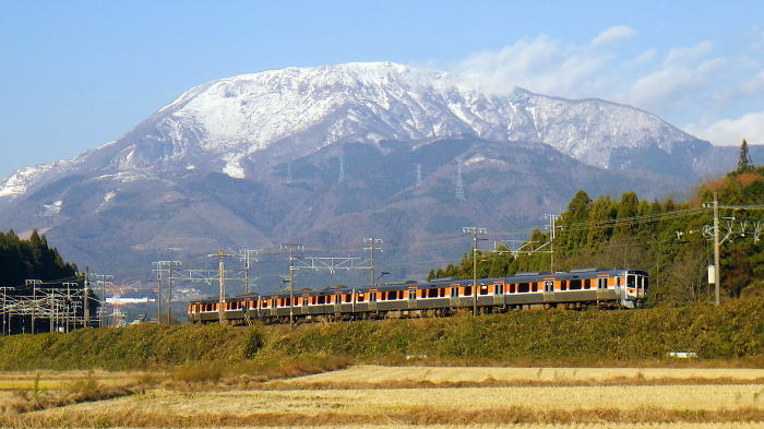 左端上:野瀬山392m、左上奥:南宮山419m、中央右上奥:笙ヶ岳909m。 |