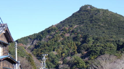 ![]() 五ヶ所湾からr12で北上すると正面に1座目の五ヶ所浅間山(五ヶ所富士)。山頂に鳥居が望めます。 |