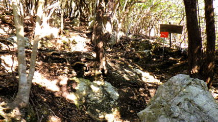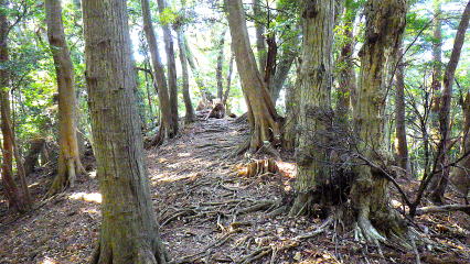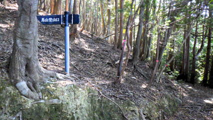 ![]() 基本的には掘道の登山道です。テープや赤色の道標(奥右上)もあり、ミスなく辿れました。 |