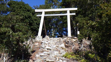 ![]() 展望所から20m高度を上げれば、麓で見た鳥居に出合います。潜ると… |