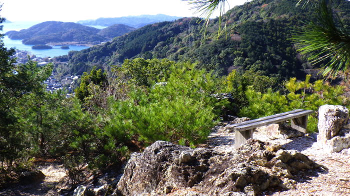![]() やがて「五ヶ所富士展望所」に出合います。五ヶ所湾の素晴らしい眺望をゲット。 (10:20) |