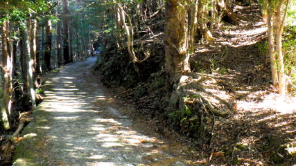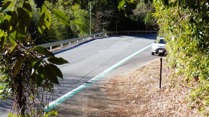 ![]() 往きの登山道を忠実に戻り、県道の駐車地に着きました。車で愛洲の里公園へ走ります。 (10:50)) |